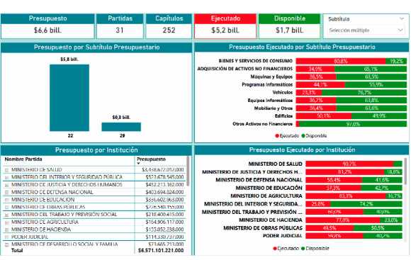 con $5.8 billones, mientras que el Subtítulo 29, de gastos de capital, representa solo $0.8 billones. La ejecución global de estos recursos es muy dispareja: el ítem de Bienes y Servicios de Consumo exhibe una alta eficiencia, con un 80.8% de ejecución. En