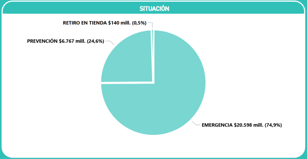 - Prevención: Representa el 24,6% del gasto ($6.767 millones). Esta cifra es relevante, ya que indica que una cuarta parte de las adquisiciones se destina a la preparación y mitigación de riesgos antes de que se transformen en desastres.