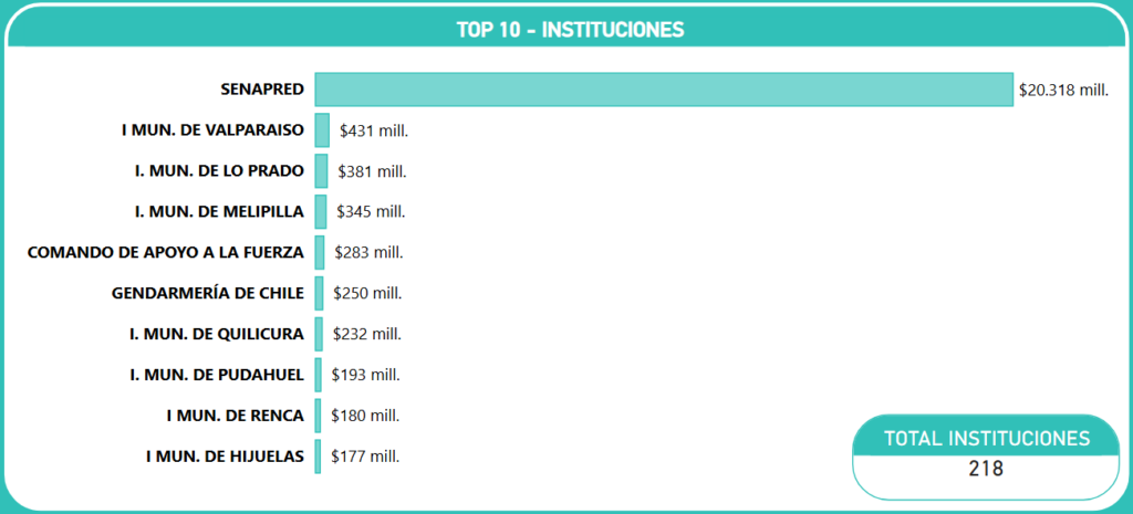 A pesar del dominio de SENAPRED, existen 208 instituciones adicionales que operan a través de este ID. Este dato es relevante, pues demuestra que el convenio ha logrado capilaridad en el sector público, permitiendo que organismos menores accedan a suministros de emergencia sin depender exclusivamente de las compras centralizadas.